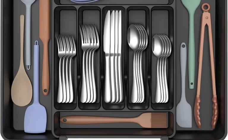 It depends on your collection. For basic flatware, a seven‑slot tray may suffice. If you store gadgets, measuring spoons or specialty tools, consider modular sets or adjustable dividers that can expand and adapt as your collection grows.