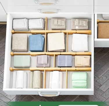 This is best for shoppers who want a divider-style system using bamboo material rather than fabric bins or plastic separators. The listing describes expandable dividers that adjust from 18 to 22.6 inches, plus non-slip silicone ends designed to help prevent sliding and protect drawer surfaces. Divider systems like this work well when you want to create custom sections for clothing, office supplies, or personal items without adding multiple separate bins. If you prefer a more structured look and want [Insert Primary Keyword] that can be configured to your drawer width, an adjustable bamboo set is a strong premium-style option.