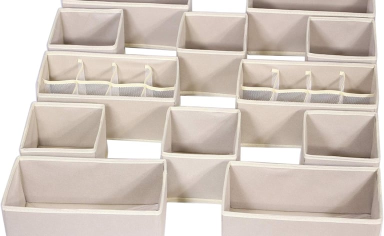 This option is best for households that want a bigger assortment of organizer pieces to cover different item types across several drawers. The listing notes 24 storage bins in various sizes, which supports organizing everything from socks and underwear to baby clothing, scarves, shirts, and more. Because the bins are described as foldable and portable, it’s a practical choice if you want to adjust your layout as seasons or storage needs change. If you’re trying to build a consistent system using [Insert Primary Keyword] across a dresser, nursery, and closet shelves, a variety pack can help create matching zones without mixing brands or styles.