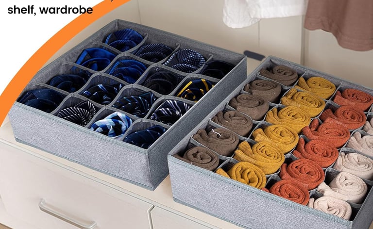 This set is best for anyone who wants a straightforward way to separate everyday categories—like underwear, socks, baby clothes, accessories, or ties—without committing to a single divider layout. It’s designed for drawer and closet organization, and the foldable, stackable structure gives you a simple way to keep similar items grouped. If you’re starting from “everything mixed together,” this kind of multi-bin approach can help you create repeatable zones, which is a practical way to maintain order over time. It’s also a solid option when you want [Insert Primary Keyword] that can be moved from dresser drawers to shelves depending on your storage needs.
