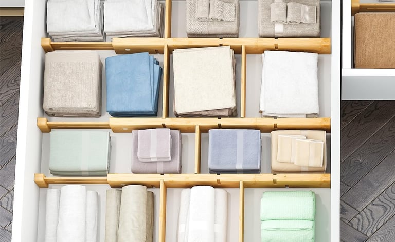 Material affects how an organizer feels in daily use and what kinds of items it’s best suited to hold. Fabric and non-woven organizers are common for clothing categories, while plastic dividers are often used in shallow drawers where wipeable surfaces are preferred. Bamboo divider sets offer an alternative material choice for those who want a different look or structure.
