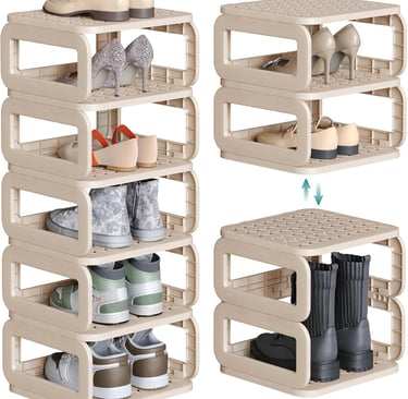 Removable plastic shelves allow you to configure the rack into one tall unit or two shorter stacks, and you can remove tiers to fit high heels or boots.