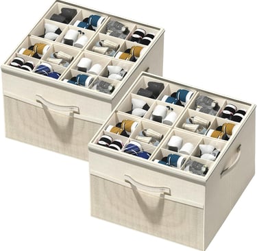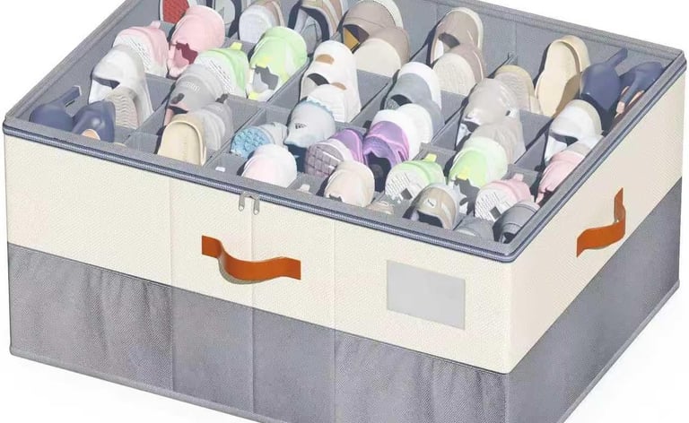 For shoes you want hidden yet accessible, these Aokeyee containers are a great solution. Each box comes flat‑packed and pops up to reveal 24 adjustable cells. Dividers snap into place or fold back to create larger compartments for bulkier items. A transparent cover and front pull handle make finding the right pair simple without unzipping the entire bin. Thanks to their cube shape, you can stack them, slide them under beds or line them on closet shelves for a tidy look. When not needed, they collapse to save space. The versatility and protective design make them a smart alternative to plastic shoe boxes or heavy wooden drawers.