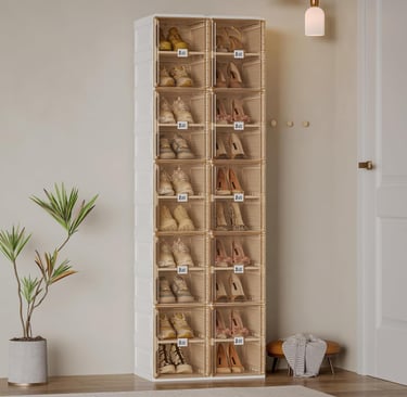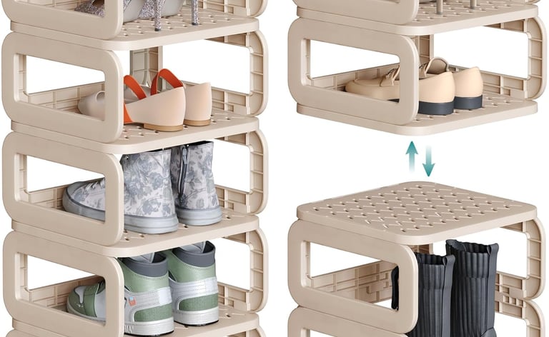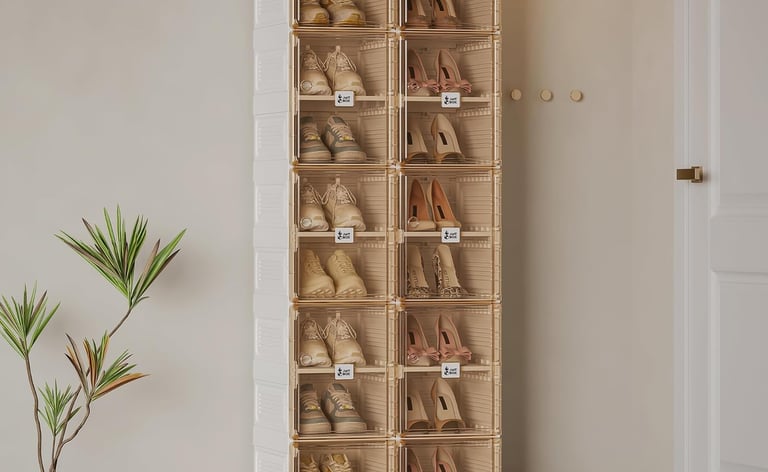 Think about both your current shoe collection and how it may grow. Tiered racks or vertical units can hold dozens of pairs without taking much floor space. Bins and containers with adjustable dividers allow you to resize compartments for different styles. If you have boots or high heels, look for deeper shelves or removable tiers.