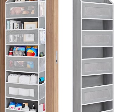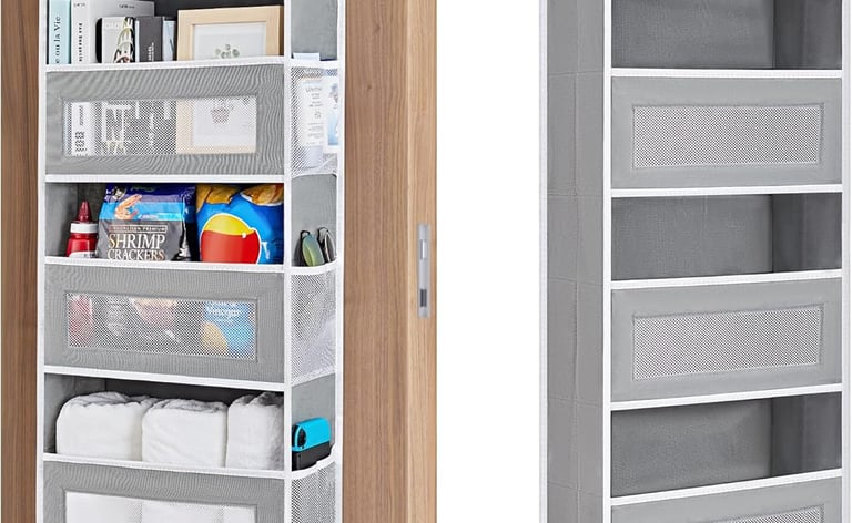 An over‑the‑door organizer uses vertical space that would otherwise be wasted, turning the back of a door into valuable storage. It also hides clutter when the door is closed and typically requires no tools to install. Backs of doors act as a “blank canvas” for storing everything from accessories to pantry goods.