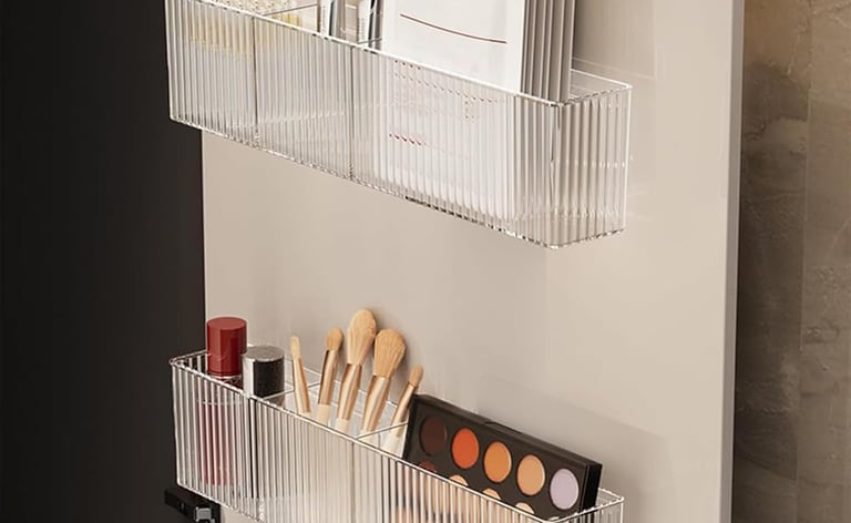 Fabric and mesh organizers can often be spot cleaned with mild soap and water. For clear plastic units, use a non‑abrasive cleaner to keep them crystal‑clear. Engineered wood cabinets should be wiped with a slightly damp cloth and dried immediately to avoid warping. Regularly emptying and reorganizing the compartments will prevent dust build‑up and extend the life of your organizer.