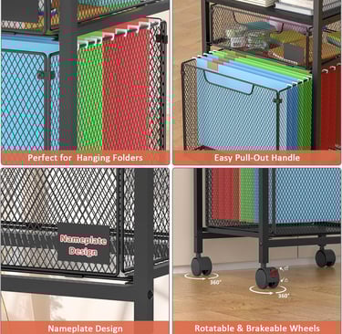 Think about how much paperwork or how many supplies you need to organize. A single‑drawer rolling cart might suffice for a student’s homework, while a five‑drawer cabinet can separate bills, projects and crafts. If you handle legal documents or thick binders, choose deeper drawers or lateral cabinets designed to accommodate larger folders. For families, dual drawers with hanging rails and adjustable dividers make it easy to categorize files by person or subject.