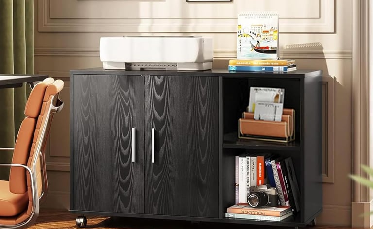 Measure your space before buying. If your desk sits snug against a wall, a low file cabinet that slides underneath saves room, whereas tall vertical units make the most of unused corners. A rolling cart can tuck beside a bed or couch and follow you from room to room, while a cabinet with doors doubles as a printer stand in a living area. In apartments or multipurpose rooms, units with a finished wood top can also serve as end tables or nightstands.