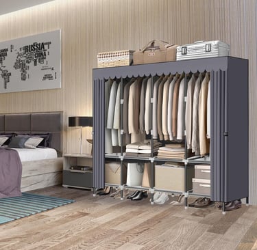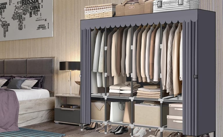 For households seeking a versatile storage solution, the LOKEME Portable Wardrobe Closet delivers both hanging space and enclosed shelving. It’s ideal for bedrooms without built‑in closets, guest rooms, or seasonal storage, thanks to its roomy design that accommodates long coats, dresses, and folded garments. This wardrobe solves the common issue of overflowing closets by providing a dedicated space to store and organize clothing, while the zippered cover protects garments from dust. Compared with simpler garment racks, this wardrobe stands out due to its combination of hanging rods, storage cabinets, and durable materials that support heavier loads.