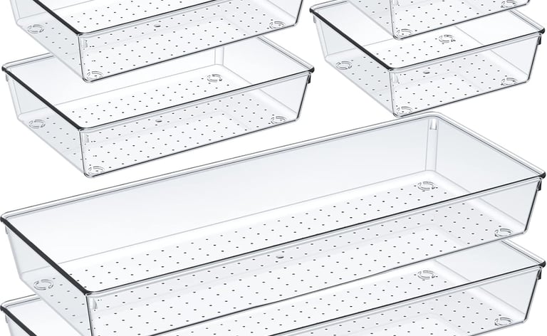 While every product on this list provides great storage, the Cruisia Clear Drawers earn our Top Choice distinction. Why? It offers the most versatility per dollar. At around twenty dollars, you receive six sturdy PET trays that can organize drawers in your kitchen, bathroom, office or bedroom. The pieces come in three sizes to fit utensils, makeup, stationery and snacks, and the clear plastic means you always know where your items are. Plus, the non‑slip pads keep everything steady when you open drawers. For renters, students or anyone looking to tackle clutter without investing in bulky furniture, this budget‑friendly set is a game‑changer.