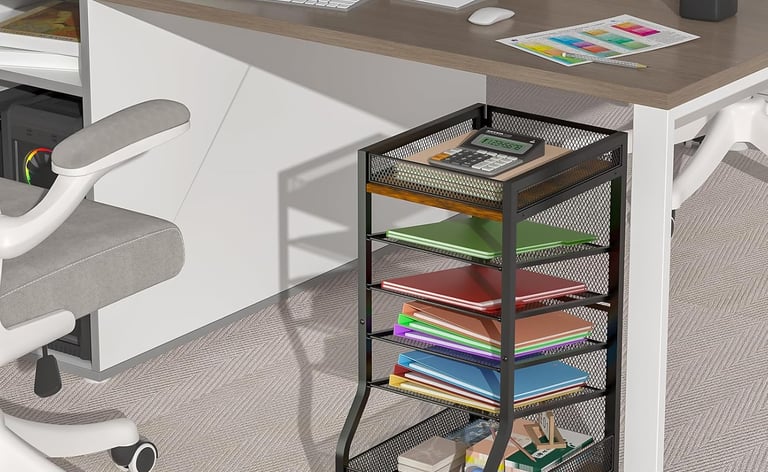 Measure the area where you plan to put your organizer. Vertical paper sorters with small footprints are ideal for compact desks, while rolling carts or wall‑mounted racks can free up valuable surface space. If you have a particularly narrow gap between a desk and wall, look for slim carts or under‑desk solutions.