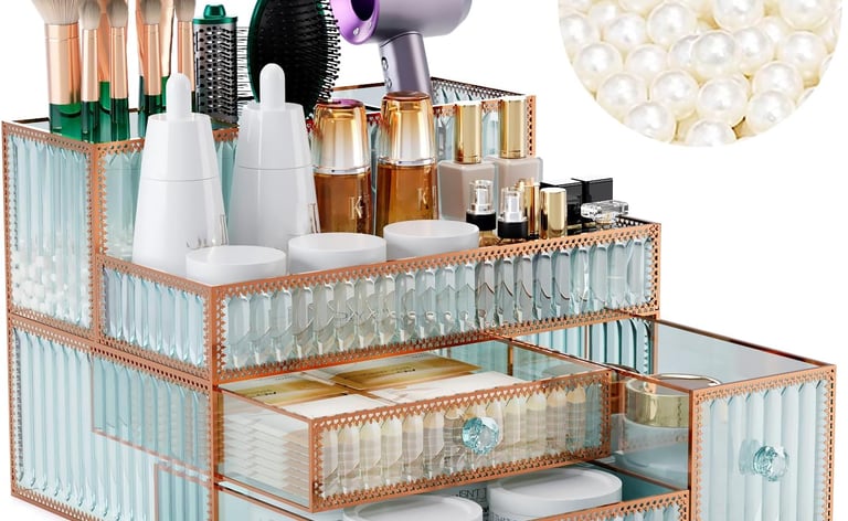 Measure your counter depth and available surface area. Small bathrooms benefit from slim profiles and vertical designs, like the Sorbus Stackable Drawers. Corner organizers such as the NATURE'S SOURCE Makeup Organizer take advantage of unused space. If you travel often, opt for a hanging toiletry bag that keeps your items off crowded hotel countertops. Those with hair tools need a unit that can handle heat and cords, like the HB Design Hair Tool Organizer.