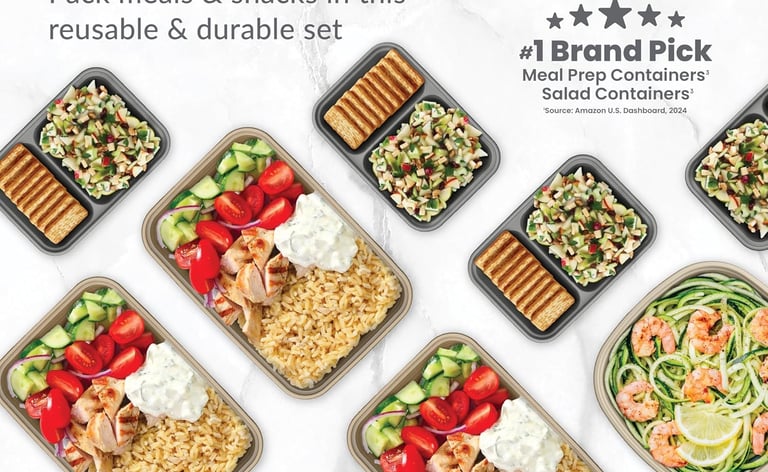Kitch'nMore XL Food Containers deliver the best balance of capacity and convenience. Thirty BPA‑free boxes mean you can prep a week of meals and store them neatly thanks to leak‑proof lids and a stackable design. Each 2.4 lbs. container moves from freezer to microwave or dishwasher with ease, making this set the most versatile option for its price point. Its ability to be washed and reused countless times makes it a great option for any household that regularly preps its weekly meals ahead of time.